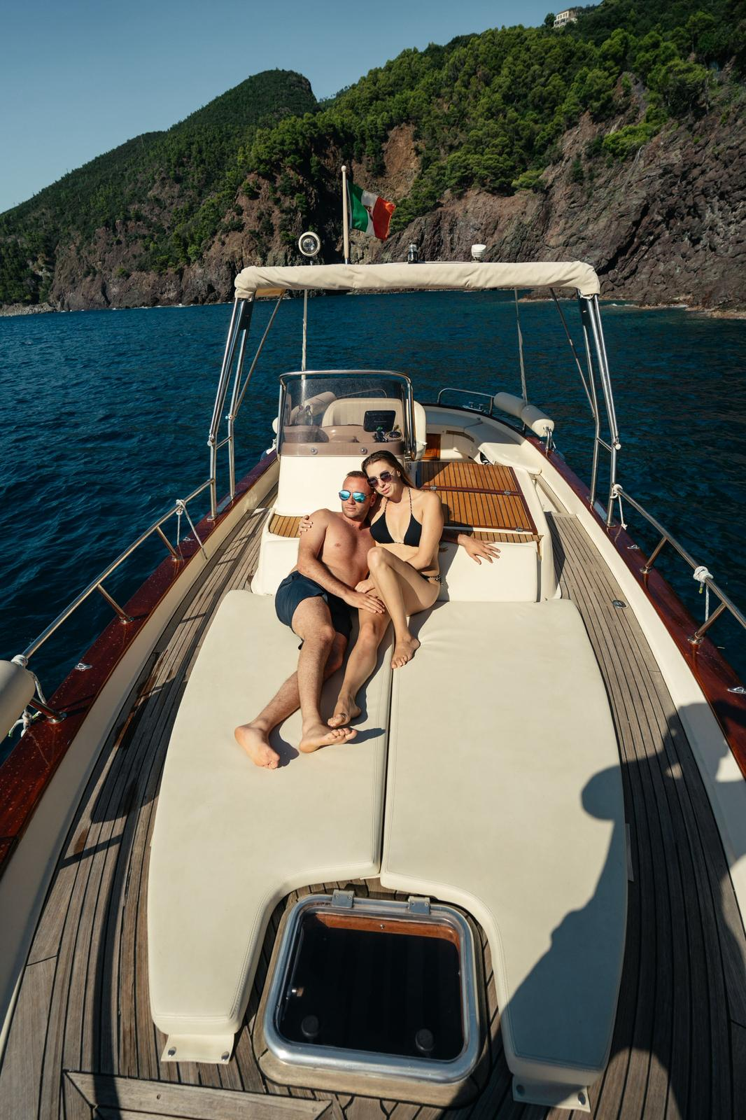 Servizi a bordo: aperitivo, teli mare compresi, snorkeling, ampio prendisole con tendalini